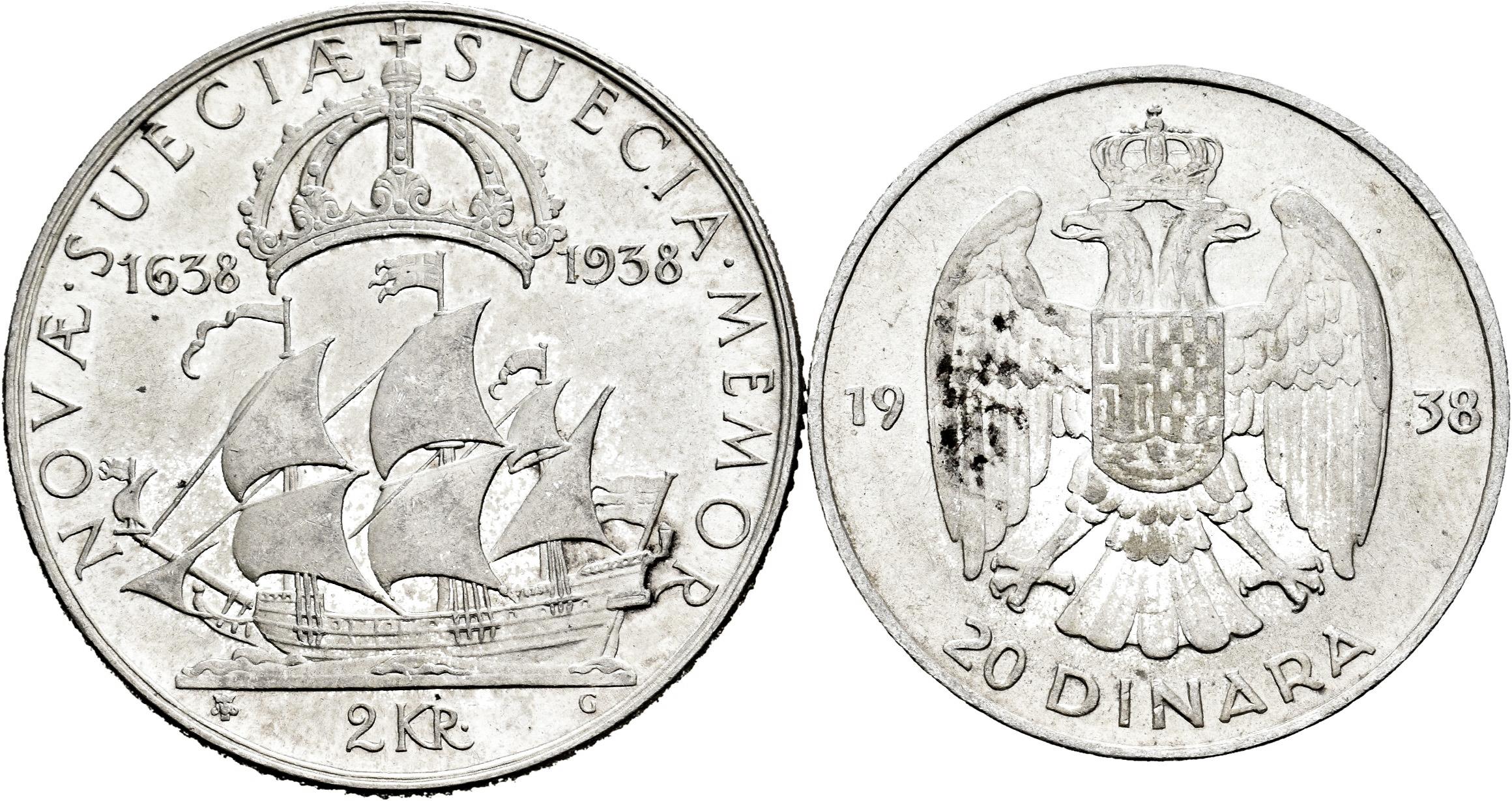 Lote de 2 monedas de plata; 2 kroner 1938 (Km-807) y 20 dinara 1938 (Km-23). Es imprescindible un riguroso examen. SOLO ENVÍO A ESPAÑA PENÍNSULA. NO SE ADMITE DEVOLUCIÓN. SC-. Est...50,00.