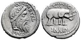 Caecilia. Q. Caecilius Metellus Pius Scipio. Denario. 47-46 a.C. África. (Ffc-220). (Craw-459/1). (Tesorillo-Caecilia 6, mismo ejemplar). Anv.: Cabeza laureada de Júpiter a derecha, Q. METEL. PIVS. Rev.: Elefante a derecha,encima: SCIPIO., en el exergo: IMP. Ag. 3,75 g. Ex Ancient Delights, actualmente Mayor 25. Vcoins. (Diciembre 2007). MBC+. Est...200,00.