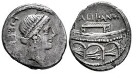 Lollia. Lollius Palikanus. Denario. 45 a.C. Roma. (Ffc-818). (Craw-473/1). (Tesorillo-Lollia 1, mismo ejemplar). Anv.: Cabeza diademada de la Libertad a derecha,detrás: LIBER(TATIS). Rev.: Tribuna de las arengas adornada con proas de nave,encima: (P)ALIKANVS. Ag. 3,31 g. Rara. Ex J. Vico 108 (09/06/2005), lote 196. Conserva la etiqueta original. MBC/MBC+. Est...200,00.