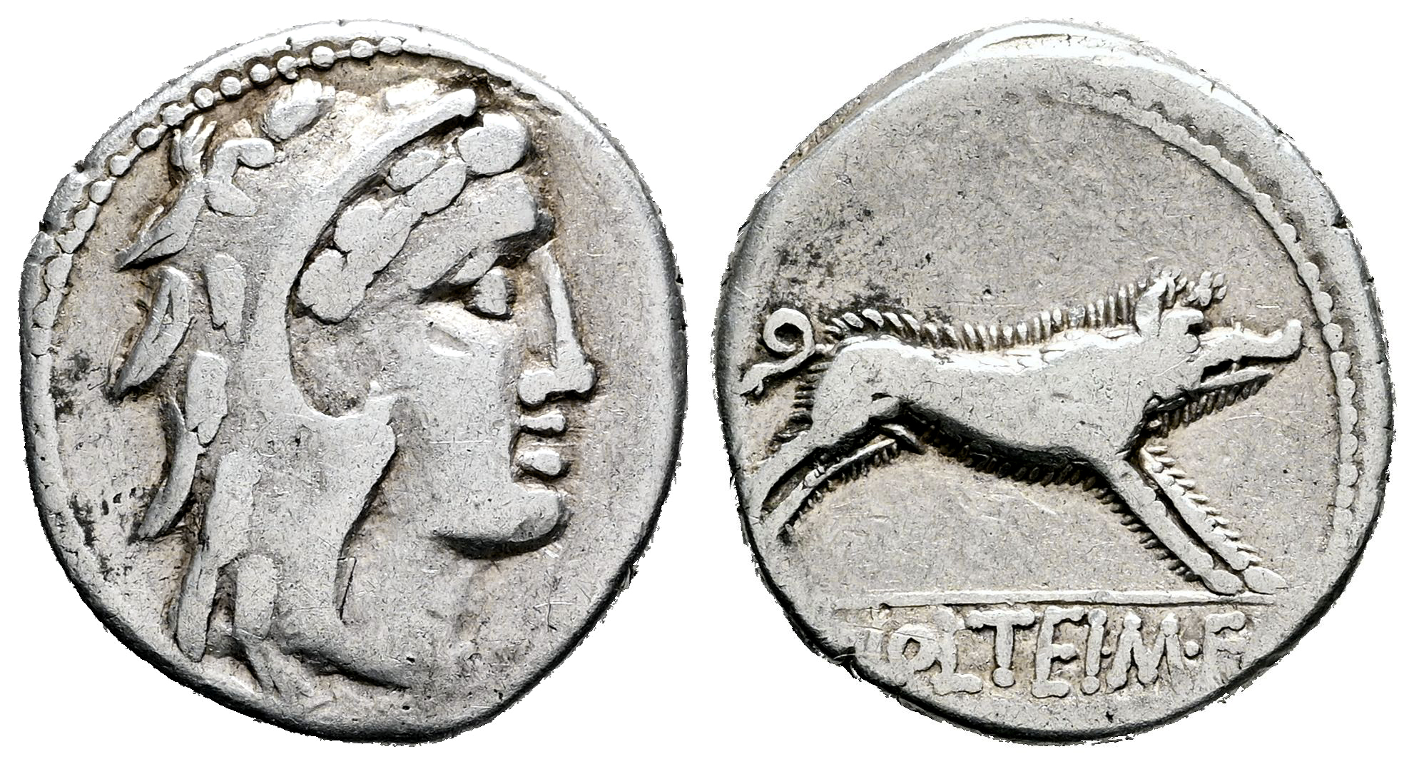 Volteia. M. Volteius M.f. Denario. 78 a.C. Roma. (Ffc-1233). (Craw-385/2). (Tesorillo-Volteia 2, mismo ejemplar). Anv.: Cabeza de Hercules joven a derecha, cubierta con piel de león. Rev.: Jabalí a derecha, en el exergo: M. VOLTEI. M. F. Ag. 3,77 g. Ex J. Vico (Marzo 2002), lote 1343. MBC. Est...90,00.