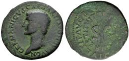Germánico. As. 80-81 d.C. Roma. Restitución acuñada bajo Tito. (Ric-I 418 (Titus)). (Cohen-14). (Tesorillo-Germánico 1, mismo ejemplar). Anv.: GERMANICVS CAESAR TI AVG F DIVI AVG N. Cabeza desnuda izquierda. Rev.: (IMP T CAES DI)VI VESP F AVG P (M) / TR P (P COS VI)II RESTITVIT. Leyenda alrededor de S C grande. Ae. 8,84 g. Rara. Ex Ancient Delights, actualmente Mayor 25 (Junio 2002). MBC-/BC+. Est...200,00.