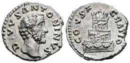 Divo Antonino Pío. Denario. 161 d.C. Roma. (Ric-III 436). (Bmcre-57). (Tesorillo-A. Pío 9, mismo ejemplar). Anv.: DIVVS ANTONINVS. Cabeza desnudaa a la derecha. Rev.: CONSECRATIO. Pira de cuatro niveles, decorada con tapices y guirnaldas, coronada por cuadriga. Ag. 3,15 g. Pequeño defecto en el cospel. EBC-. Est...150,00.