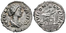 Lucilla. Denario. 161-169 d.C. Roma. (Ric-III 770). (Bmcre-342). (Tesorillo-Lucila 4, mismo ejemplar). Anv.: LVCILLA AVGVSTA. Busto drapeado a la derecha. Rev.: IVNONI LVCINAE. Juno sedente a la izquierda, sosteniendo una flor y un niño. Ag. 3,57 g. Ligero tono. Atractiva. Ex Ancient Delights, actualmente Mayor 25. (Febrero 2005). MBC+. Est...150,00.