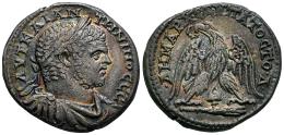 Caracalla. Tetradracma. 213-217 d.C. Tiro. Fenicia. (Prieur-1551). (Tesorillo-Caracalla 35, mismo ejemplar). Anv.: ΑΥΤ ΚΑΙ ΑΝΤѠΝΙΝΟC CЄ. Busto laureado, drapeado y con coraza a derecha. Rev.: ·ΔΗΜΑΡ·X· ЄΞ·ΥΠΑΤΟC ΤΟ·Δ·. Águila en pie frente a una maza, mirando a izquierda, con concha de murex entre las patas. Ag. 13,28 g. Suave pátina con precioso tono iridiscente. Ex J. Vico 111 (08/06/2006), lote 482. Conserva la etiqueta original. MBC+. Est...200,00.