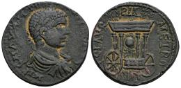 Eliogábalo. Phoenicia. AE 26. 218-222 d.C. Sidón. (Bmc-250). (Sng Cop-256). (Tesorillo-Heliogábalo 26, mismo ejemplar). Anv.: IMP C M AV ANTONINVS AV. Busto laureado, drapeado y con coraza a derecha. Rev.: COL AVR PIA METRO. Carro de Astarte: baetilo dentro de ermita portátil; SID en exergo. Ae. 12,99 g. Ex Amphora Coins, Vcoins (Abril 2008). MBC/MBC+. Est...150,00.