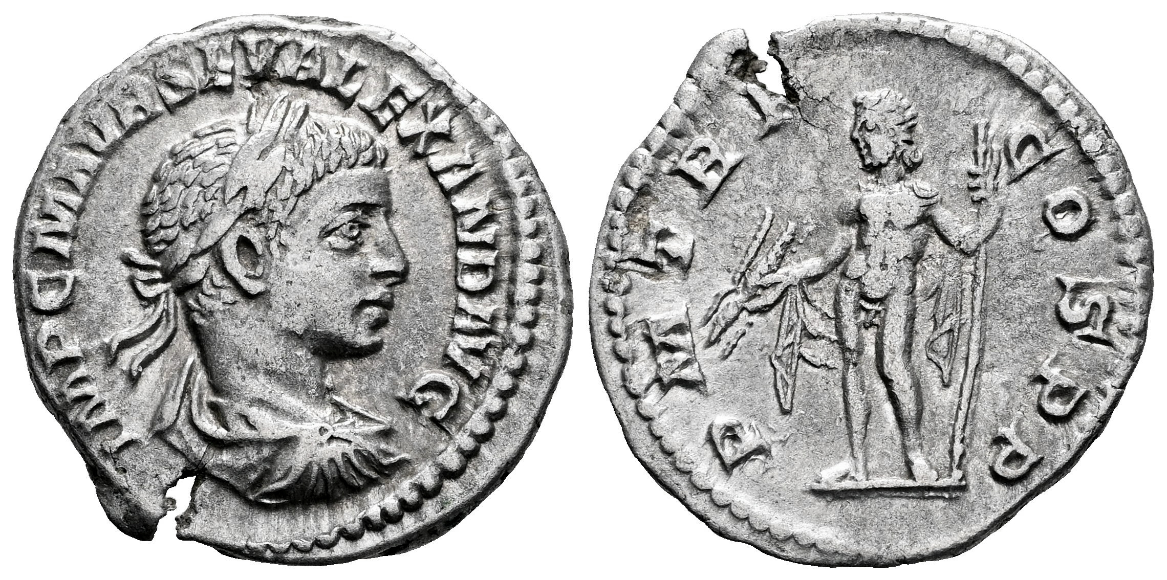 Alejandro Severo. Denario. 222 d.C. Roma. (Ric-IV 5). (Bmcre-16/18). (Tesorillo-A. Severo 18, mismo ejemplar). Anv.: IMP C M AVR SEV ALEXAND AVG. Busto laureado y drapeado a la derecha. Rev.: P M TR P COS P P. Júpiter en pie de frente, mirando a la izquierda, sosteniendo un rayo y un cetro largo. Ag. 2,36 g. Ex Ancient Delights, actualmente Mayor 25. Convención de Madrid (Enero 2006). MBC+/MBC. Est...80,00.