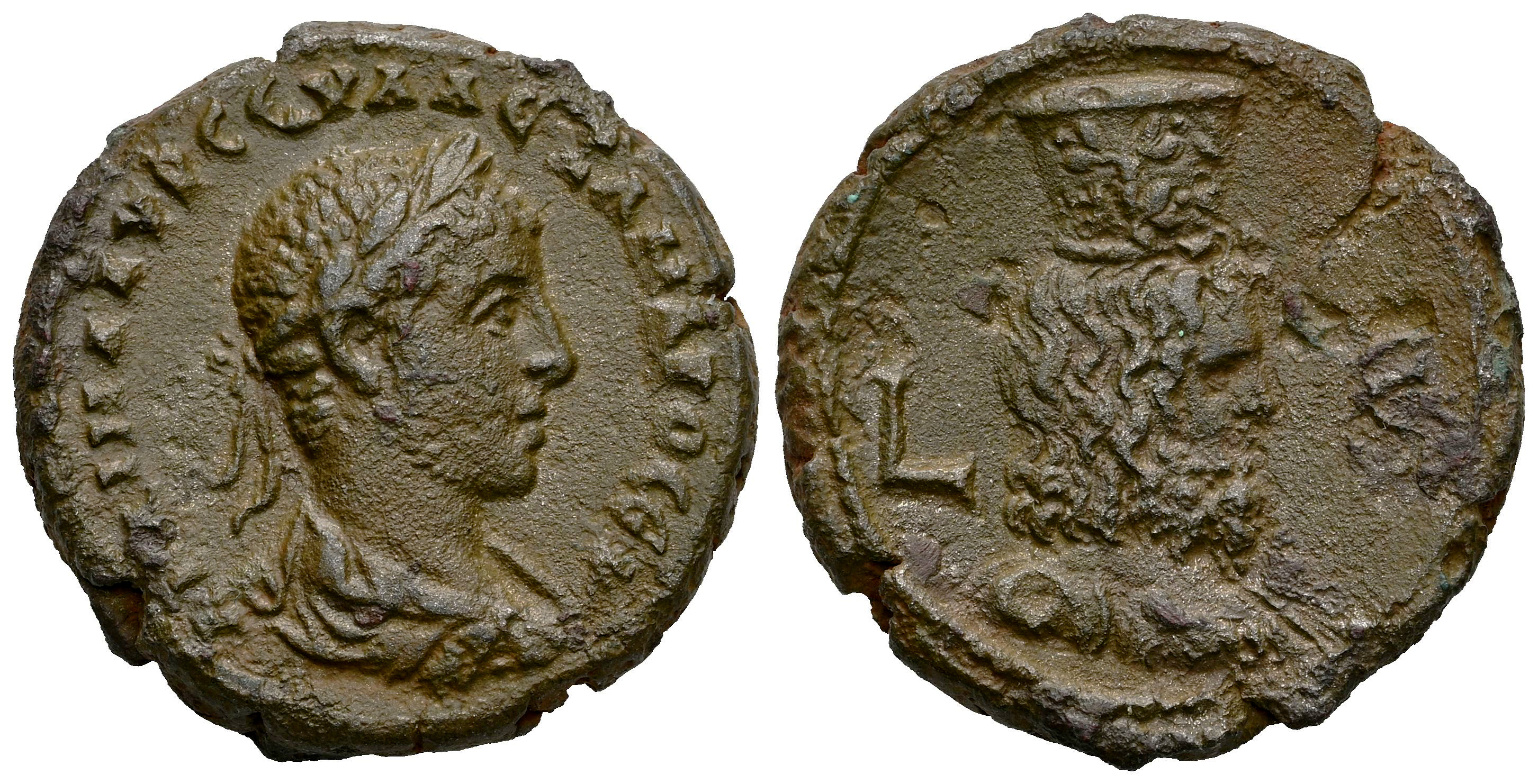 Alejandro Severo. Tetradracma. RY 5 = 225/6 d.C. Alejandría. (K&G-62.62). (Dattari (Savio)-4349). (Tesorillo-A. Severo 34, mismo ejemplar). Anv.: A KAI MA AYP CЄY AΛEΞANΔPOC ЄY. Busto laureado, drapeado y con coraza a la derecha. Rev.: Busto drapeado de Serapis a la derecha, con modio en la cabeza; L-Є a través de los campos. Ve. 10,87 g. MBC+. Est...100,00.