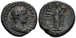 Alejandro Severo. Tetradracma. RY 5 = 225/6 d.C. Alejandría. (Emmett-3096.5). (Dattari (Savio)-4293). (Tesorillo-A. Severo 35, mismo ejemplar). Anv.: A KAI MA AVP CЄV AΛЄZANΔPOC ЄV. Busto laureado, drapeado a la derecha, con paludamentum, coraza y aegis. Rev.: Dikaiosyne en pie a la izquierda, sosteniendo balanzas y cornucopias, LЄ en el campo izquierdo. Ve. 12,63 g. Ex Aeternitas Numismatics. Convención de Madrid (Octubre 2011). MBC+. Est...120,00.