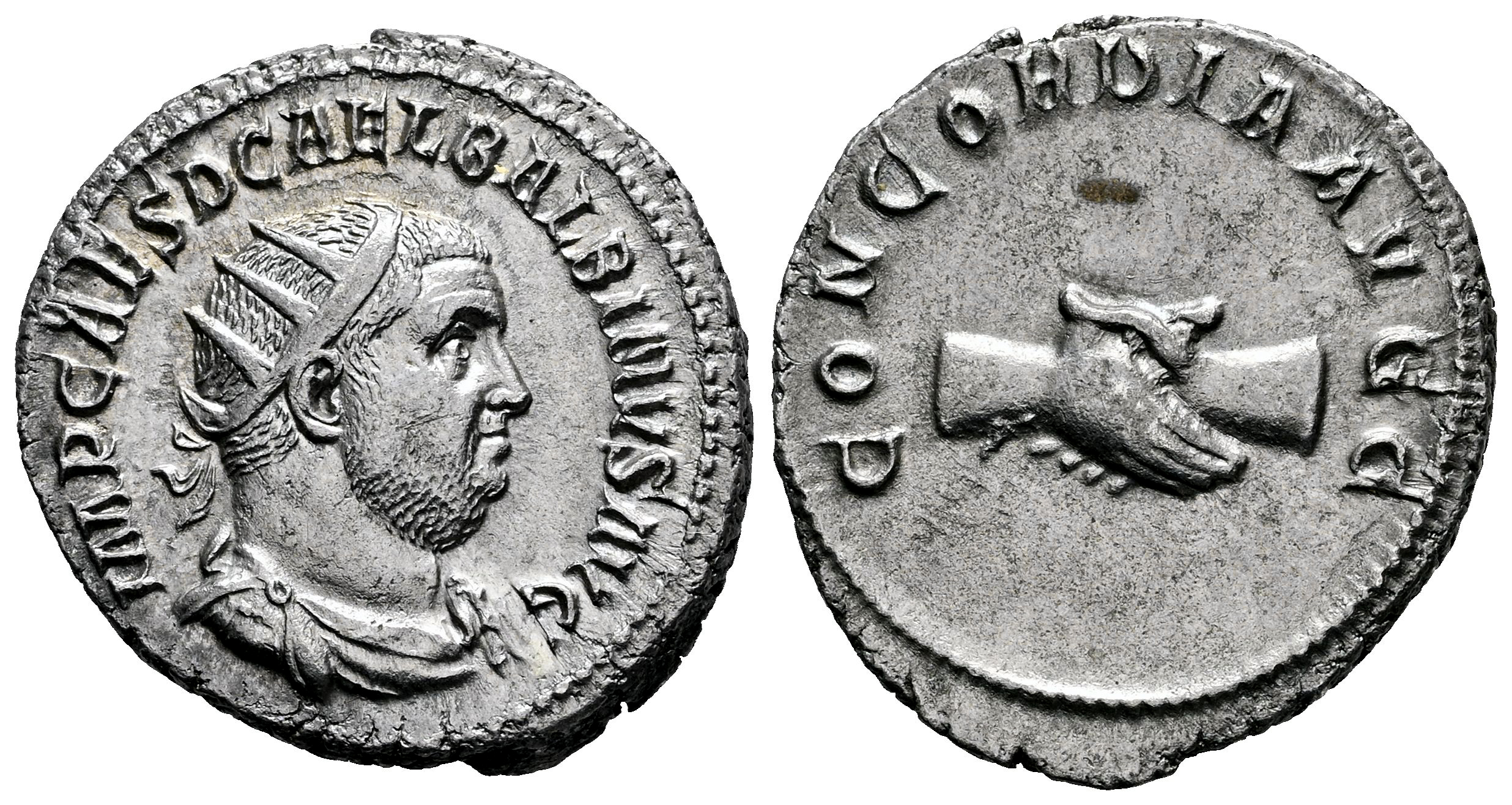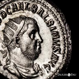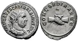 Balbino. Antoniniano. 238 d.C. Roma. (Ric-IV 10). (Bmcre-67). (Tesorillo-Balbino 1, mismo ejemplar). Anv.: IMP CAES D CAEL BALBINVS AVG. Busto radiado, drapeado y con coraza a la derecha. Rev.: CONCORDIA AVGG, manos entrelazadas. Ag. 4,98 g. Buen ejemplar. Ex J. Vico 112 (16/11/2007), lote 397. Conserva la etiqueta original. EBC. Est...500,00.
