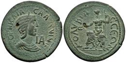Salonina. 11 Assaria. 256-258 d.C. Colybrassus. Cilicia. (RPC-Unassigned 60416). (Tesorillo-Salonina 8, mismpo ejemplar). Anv.: ΚΟΡΝΗΛΙΑ ϹΑΛΩΝΙΝΑ, ΙΑ. Busto con diadema y drapeado, mirando a la derecha. Rev.: ΚΟΛΥΒΡΑϹϹΕΩΝ. Zeus sedente a la izquierda, con una patera en la mano derecha y un cetro en la izquierda. Ae. 16,79 g. Muy rara. Ex J. Vico 124 (11/11/2010), lote 529. MBC+. Est...200,00.