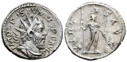 Póstumo. Antoniniano. 262-263 d.C. Treveri. (Ric-V 2 93). (Rsc-419a). (Tesorillo-Póstumo 16, mismo ejemplar). Anv.: IMP C POSTVMVS P F AVG, Busto radiado, drapeado y con coraza a la derecha. Rev.: VIRTVS AVG, Marte en pie de frente, mirando a la derech, con lanza y escudo. Ag. 3,51 g. MBC+. Est...60,00.