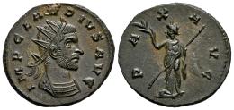 Claudio II El Gótico. Antoniniano. 268-270 d.C. Roma. (Ric-V 80). (Tesorillo-Claudio II 20, mismo ejemplar). Anv.: IMP CLAVDIVS AVG. Busto radiado, drapeado y con coraza a la derecha. Rev.: PAX AVG. Pax drapeada, en pie, mirando a la izquierda, con una rama de olivo en la mano derecha y un cetro en la izquierda. Ae. 3,36 g. Magnífico ejemplar. Ex J. Vico 127 (10/11/2011), lote 3380. Conserva la etiqueta original. EBC+. Est...80,00.