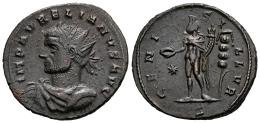 Aureliano. Antoniniano. 270-275 d.C. Siscia. (Ric-No cita). (MER/RIC-2000/3, mismo ejemplar). (Tesorillo-Aureliano 9, mismo ejemplar). Anv.: IMP AVRELIANVS AVG. Busto radiado, drapeado y con coraza a la izquierda. Rev.: GENIVS ILLVR. Genius en pie a la izquierda, portando pátera y cornucopia, estandarte detrás; S? en exergo. Ve. 3,62 g. Muy rara. Ex J. Vico 129 (07/06/2012), lote 3288. Conserva la etiqueta original. MBC+/EBC-. Est...150,00.