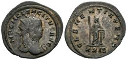 Tácito. Antoniniano. 275-276 d.C. Roma. (Ric-V 1 84). (Tesorillo-Tácito 2, mismo ejemplar). Anv.: IMP C M C L TACITVS AVG, Busto radiado y ligeramente drapeado a la derecha. Rev.: CLEMENTIA TEMP, Celementia en pie a la izquierda, portando un cetro y apoyándose sobre una columna; XXIZ en exergo. Ve. 3,30 g. MBC-/MBC+. Est...50,00.