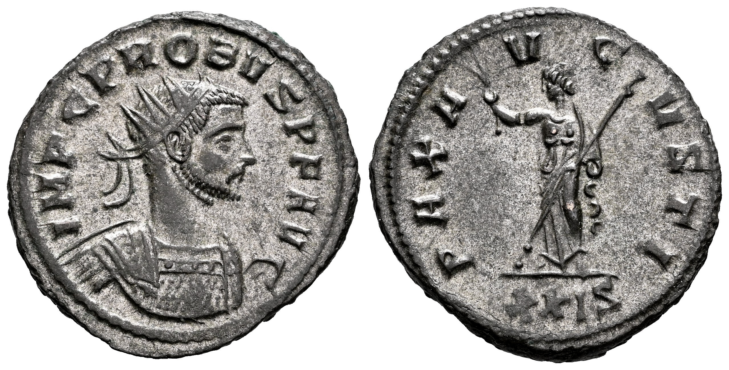 Probo. Antoniniano. 280 d.C. Siscia. (Ric-V 2 712). (Tesorillo-Probo 17, mismo ejemplar). Anv.: IMP C PROBVS P F AVG, Busto radiado y con coraza a la derecha. Rev.: PAX AVGVSTI, Pax en pie de frente, mirando a la izquierda, portando rama de olivo y cetro; XXIS en exergo. Ve. 3,99 g. EBC. Est...70,00.