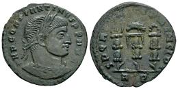 Constantino I. Follis. 312-313 d.C. Roma. (Ric-VI 348a). (Tesorillo-Constantino I 100, mismo ejemplar). Anv.: IMP CONSTANTINVS P F AVG, Busto laureado y drapeado a la derecha. Rev.: S P Q R OPTIMO PRINCIPI, aquila entre dos vexilum; RQ en exergo. Ae. 3,32 g. Ex Roman Lode, Vcoins (Julio 2006). MBC+. Est...50,00.
