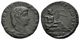 Hannibaliano. Follis. 336-337 d.C. Constantinopla. (Ric-VII 147). (Tesorillo-Anibaliano 1, mismo ejemplar). Anv.: FL HANNIBALIANO REGI, Busto con cabeza desnuda, drapeado y con coraza a la derecha. Rev.: SECVRITAS PVBLICA, Euphrates sedente a la derecha en el suelo y apoyado en un cetro, con una urna al lado y una caña detrás; CONSS en exergo. Ae. 1,62 g. Rara. Campos ligeramente alisados en anverso. Ex Ancient Delights, actualmente Mayor 25. (Octubre 2003). MBC-/MBC+. Est...120,00.