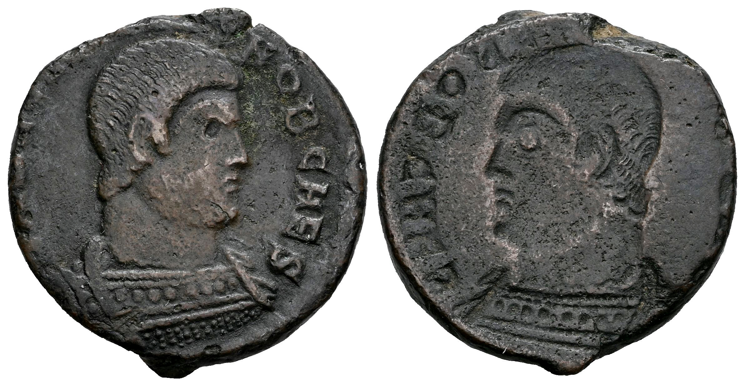 Decencio. Centenional incuso. 351-353 d.C. (Tesorillo-Decencio 1, mismo ejemplar). Anv.: (D N DECENTIVS) NOB CAES. Busto con cabeza desnuda y con coraza a la derecha. Rev.: Incuso de anverso. Ae. 4,30 g. MBC. Est...60,00.