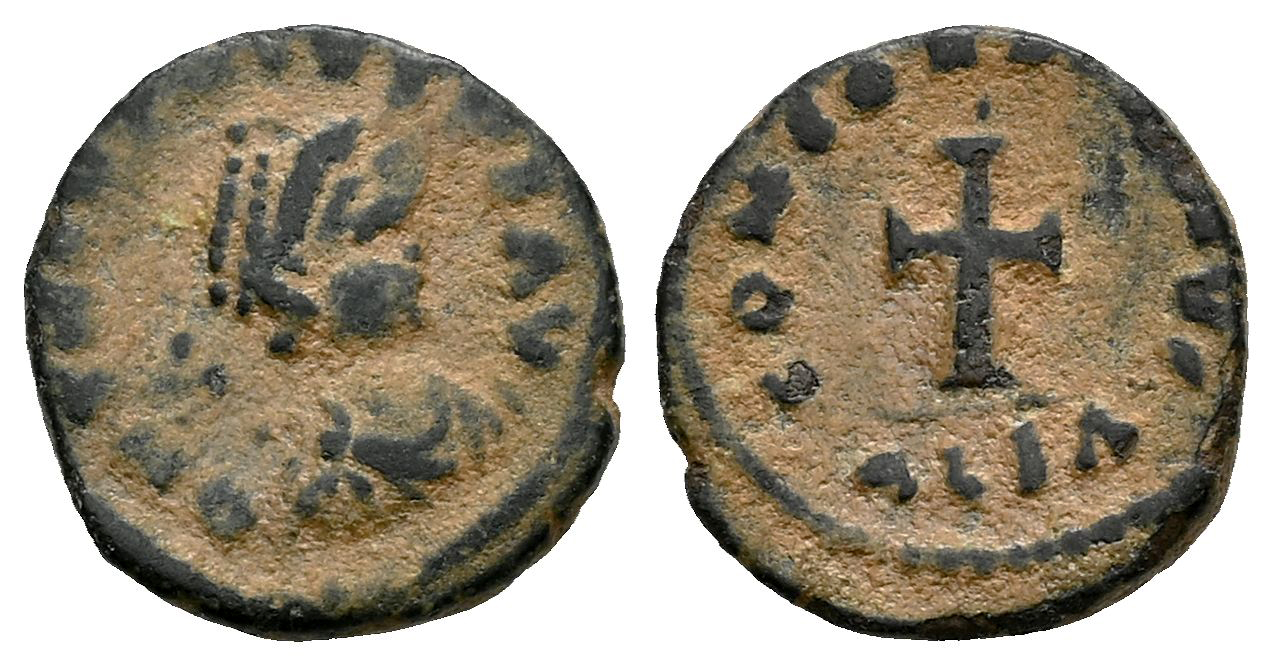 Theodosio II. Nummus. 425-435 d.C. Alejandría. (Ric-X 122). (Sear-212111). (Tesorillo-Theodosio II 3, mismo ejemplar). Anv.: D N TEODOSIVS P F AVG. Busto drapeado, con diadema a la derecha. Rev.: CONCORDIA AVG, cruz; ALEA en exergo. Ae. 0,82 g. Ex J. Vico 118 (Noviembre 2008), lote 346. MBC+. Est...30,00.