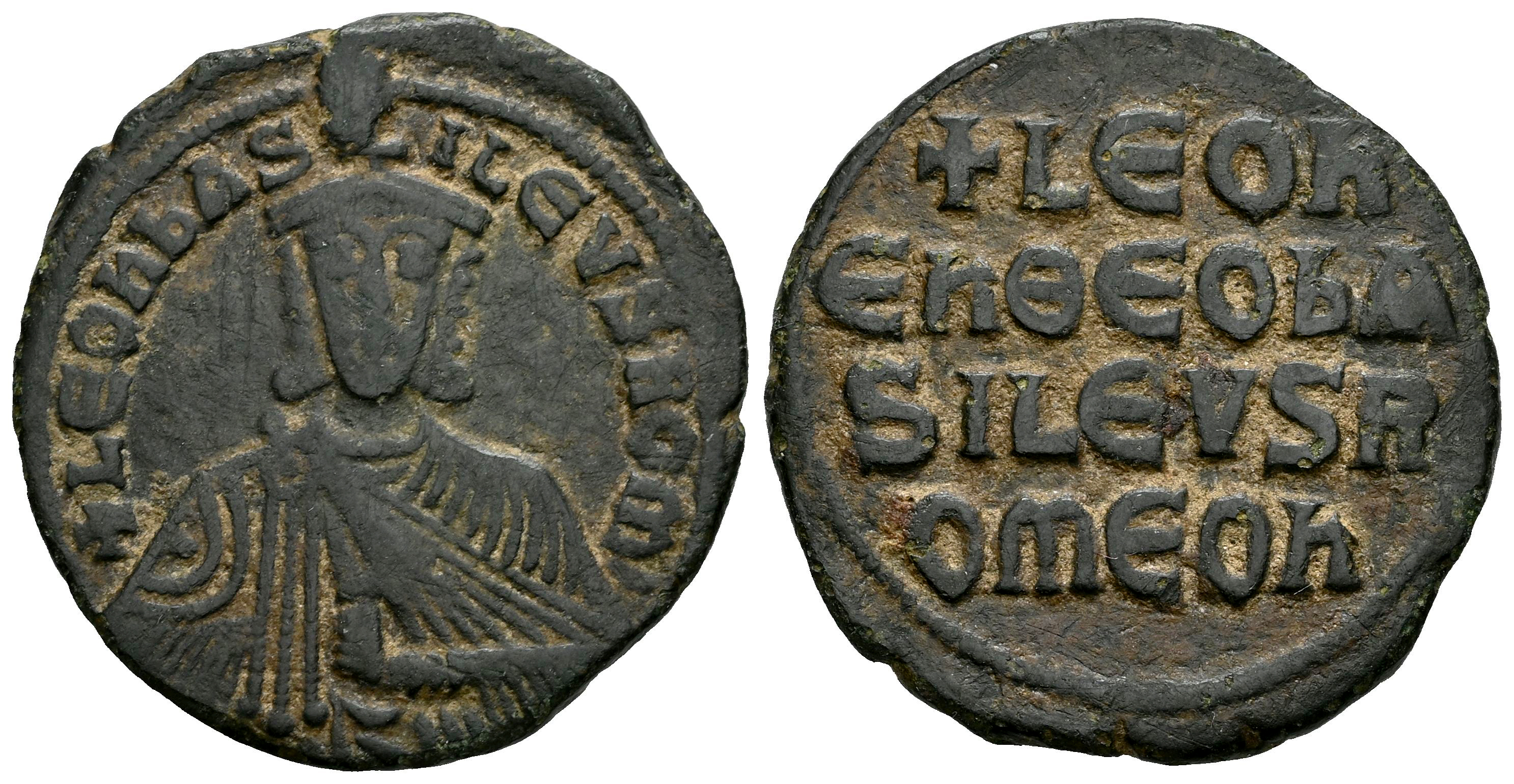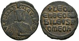Leo VI. Nummus. 886-912 d.C. Constantinopla. (Doc-8). (Sear-1729). (Tesorillo-León VI 1, mismo ejemplar). Anv.: + LEON bASILEVS ROM. Busto coronado de frente, sosteniendo akakia. Rev.: + LEON/En ΘΕΟ bA/SILEVS R/OMEOn, leyenda en cuatro líneas. Ae. 6,63 g. Ex Tony Fein, Vcoins (Agosto 2007). MBC/MBC+. Est...50,00.