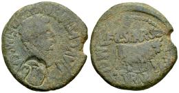 Calagurris. Época de Tiberio. As. 14-36 a.C. Calahorra (La Rioja). (Abh-429). (MIB-33/5). (Tesorillo-1-13b/9, mismo ejemplar). Anv.: Cabeza laureada de Tiberio a derecha, alrededor TI. AVGVS. DIVI. AVGVSTLF. IMP. CAESAR. Rev.: Toro a derecha, alrededor L. FVL. SPARSO. L. SATVRNINO. II. VIR. M. C. I. Ae. 11,54 g. Contramarca "Cabeza de águila legionaria" a la izquierda en anverso . BC+. Est...60,00.