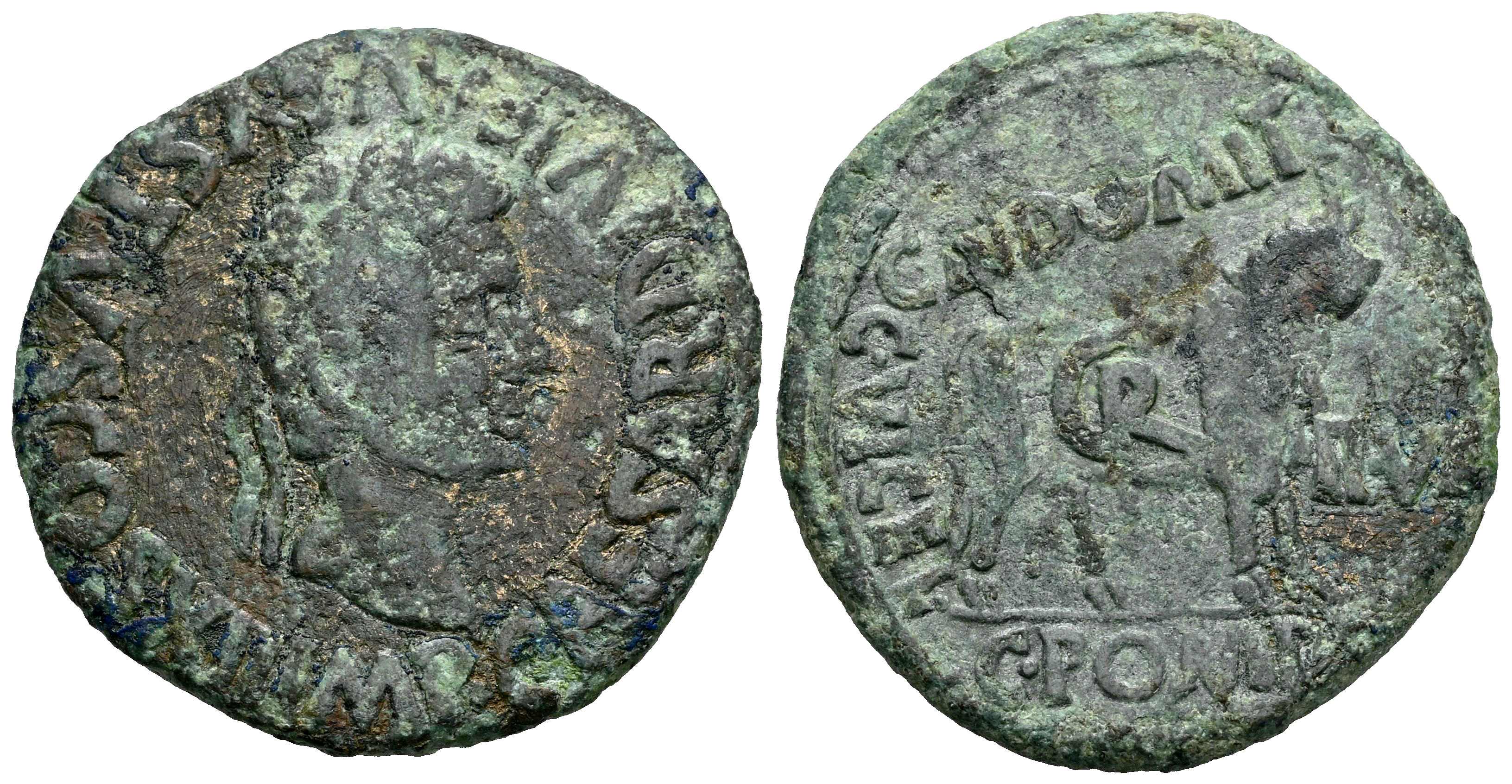 Kelse-Celsa. Época de Augusto. As. 27 a.C-14 d.C. Velilla de Ebro (Zaragoza). (Abh-812). (Tesorillo-5-13/7, mismo ejemplar). Anv.: Cabeza laureada de Augusto a derecha, alrededor IMP. CAESAR. DIVI. F. AVGVSTVS. COS. XII. Rev.: Toro parado a derecha, leyenda CN. DOMITI. C. POMPEIO. II. VIR. CVI. CEL. Ae. 8,81 g. Contramarca "CR" anexadas dentro de cartela cuadrada en reverso. Campos retocados en anverso. BC/MBC-. Est...50,00.