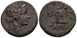 Pontos. Amisos. AE 21. 105-90 o 100-95 a.C. Tiempos de Mithradates VI Eupator. (SNG Stancomb-698). (SNG BM Black Sea-1205). (Hgc-7, 243). Anv.: Cabeza de Dioniso con corona de hiedra a la derecha. Rev.: Thyrsos con cintas apoyado sobre una cista mística drapeada con piel de pantera; monograma en el campo izquierdo, ΑΜIΣOY debajo. Ae. 7,44 g. Bonita pátina marrón. EBC-. Est...100,00.
