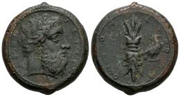 Sicilia. Siracusa. Hemilitron. 343-317 a.C. Tiempos de Timoleón y la Tercera Democracia. (CNS-II 72). (Sng Ans-477/88). (Hgc-2, 1440). Anv.: Cabeza laureada de Zeus Eleftherios a la derecha; ΖΕΥΣ ΕΛΕΘΕΙΟΣ alrededor. Rev.: Rayo erguido, águila en pie a derecha; ΣYPAKOΣIΩN alrededor. Ae. 13,36 g. Ex Roma Numismatics (21/05/2013), lote 142. MBC. Est...150,00.