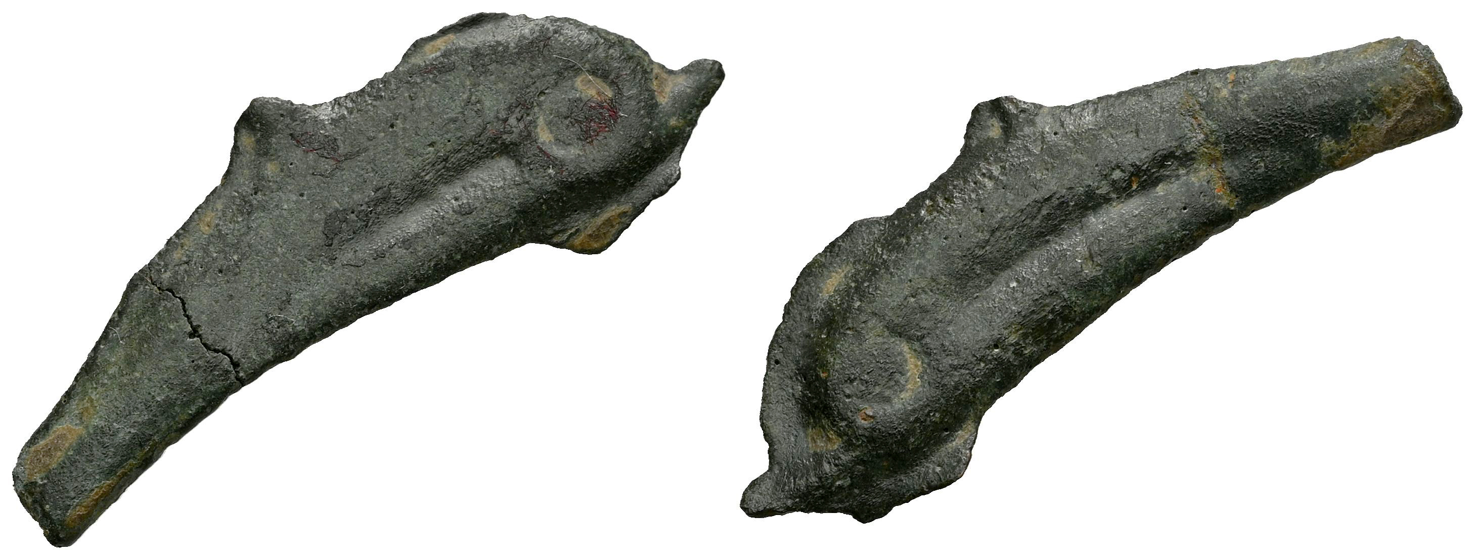 Skythia. Olbia. Tipo delfín fundida. 500-450/25 a.C. (SNG Stancomb-334/7). (SNG BM Black Sea-359/67). Ae. 1,66 g. 28mm. MBC+. Est...60,00.