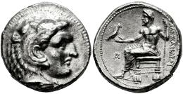 Egipto Ptolemaico. Ptolomeo I Soter, como Sátrapa. Tetradracma. 320/19-311/10 a.C. Arados. En nombre y tipos de Alejandro III de Macedonia. (Price-3426 (Byblos)). (Müller-1375). Anv.: Cabeza de Heracles a la derecha, con tocado de piel de león. Rev.: Zeus Aëtophoros sedente a la izquierda, sosteniendo un cetro; AΛEΞANΔPOY a la derecha, AP (monograma cívico) en el campo izquierdo. Ag. 16,91 g. MBC+/EBC-. Est...400,00.