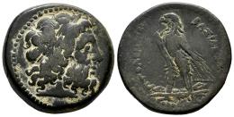 Egipto Ptolemaico. Ptolomeo II Philadelphos. Dióbolo. 285-246 a.C. Alejandría. (Svoronos-438). (Sng Cop-136). Anv.: Cabeza laureada de Zeus a la derecha. Rev.: ΠΤΟΛEΜΑΙOΥ BAΣΙΛEΩΣ. Águila con las alas plegadas en pie a la izquierda sobre un rayo. Ae. 25,29 g. BC+. Est...80,00.