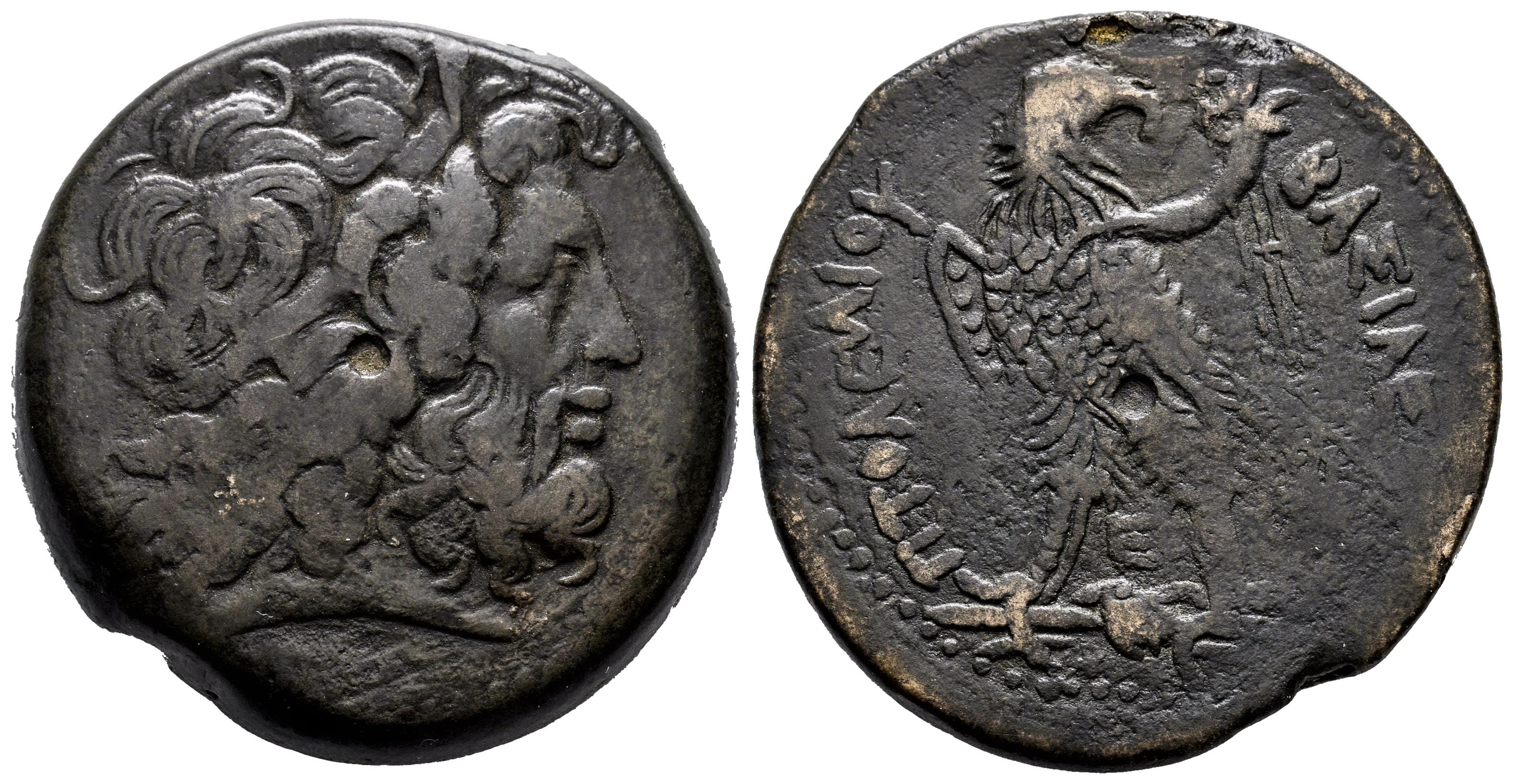 Egipto Ptolemaico. Ptolomeo III Euergetes. Tetróbolo. 246-222 a.C. Alejandría. (Svoronos-974). (Sng Cop-224/6). (CPE-B366). Anv.: Cabeza con cuerno de Zeus-Amón a la derecha, con tainia con basileion. Rev.: ΠTOΛEMAIOY BAΣIΛEΩΣ. Águila con las alas plegadas en pie a la izquierda sobre un rayo, cabeza a la derecha; cornucopia con cintas sobre el hombro, E entre las patas. Ae. 46,71 g. MBC-. Est...150,00.