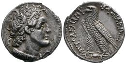 Egipto Ptolemaico. Ptolomeo VI Philometor. Tetradracma. 180-164 a.C. Alejandría. (Sng Cop-262/8). (Svoronos-1489). Anv.: Cabeza diademada de Ptolomeo I a derecha, con aegis. Rev.: ΒΑΣΙΛΕΩΣ ΠΤΟΛΕΜΑΙΟΥ. Águila con las alas plegadas parada a la izquierda sobre un rayo. Ae. 13,80 g. Leve defecto en el canto. Bella. EBC-. Est...300,00.