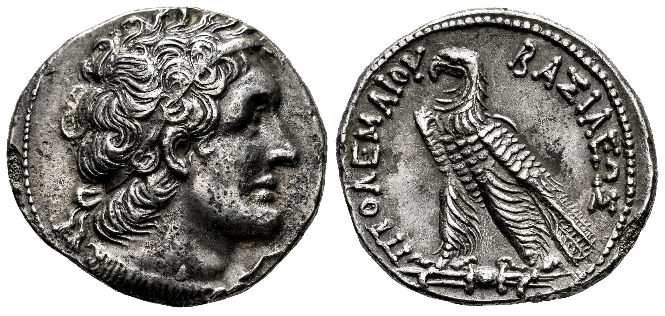 Egipto Ptolemaico. Ptolomeo VI Philometor. Tetradracma. 163-145 a.C. Alejandría. Segundo reinado en solitario. (Svoronos-1489). (Sng Cop-162/68). Anv.: Cabeza con diadema a la derecha, con aegis. Rev.: ΠTOΛEMAIOY BAΣIΛEΩΣ. Águila en pie a la izquierda sobre un rayo. Ag. 13,40 g. Leve oxidación el borde . EBC-. Est...400,00.