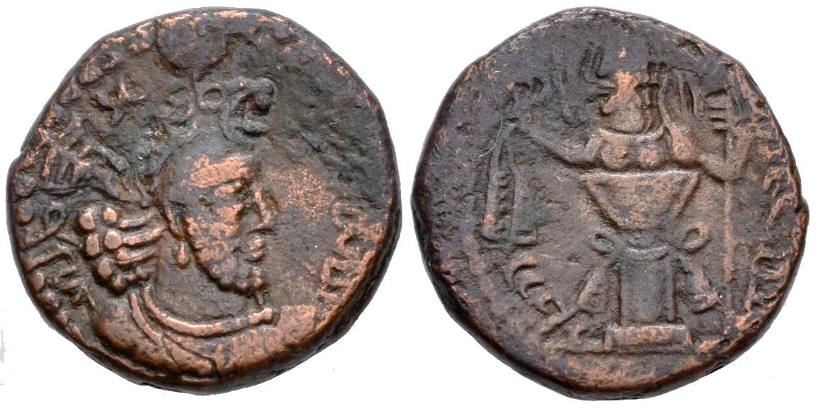 Kushano-Sasánidas. Hormizd I. AE 14. 265-295 d.C. Balkh (Baktria). (ANS Kushan-2235). Anv.: Busto drapeado de Hormizd I a la derecha, con corona decorada con korymbos y cabeza de león; delante, 'AWHRMYZDY MLKA' ('Rey de Hormiz' en pahlawi); en el campo superior izquierdo, tamgha. Rev.: 'BWLZAWNDY YZDTY' ('Dios exaltado', en pahlawi). Dios exaltado emerge del altar de fuego, sosteniendo una diadema en su mano derecha y una lanza larga en su izquierda. Ae. 2,28 g. MBC+. Est...60,00.