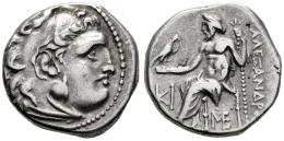 Reino de Macedonia. Antigonos I Monophthalmos. Dracma. 310-301 a.C. Lampsakos. Acuñado como Strategos o Rey de Asia, en nombre y tipos de Alejandro III. (Price-1406). (Müller-821). Anv.: Cabeza de Heracles a la derecha, con tocado de piel de león. Rev.: Zeus Aëtophoros sedente a la izquierda, sosteniendo un cetro; AΛΕΞΑΝΔΡΟ(Υ) a la derecha, KI en el campo izquierdo, monograma ME debajo del trono. Ag. 4,38 g. EBC-/MBC+. Est...120,00.