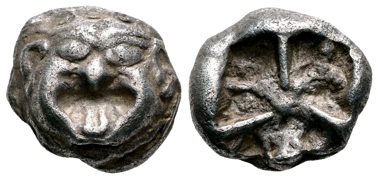 Mysia. Parion. Dracma. Siglo V a.C. (SNG BnF-1351.2). (Sng Cop-256). Anv.: Gorgoneion de frente, con la boca abierta y la lengua sobresaliente. Rev.: Cuadrado rugoso incuso. Ag. 3,97 g. MBC+. Est...100,00.