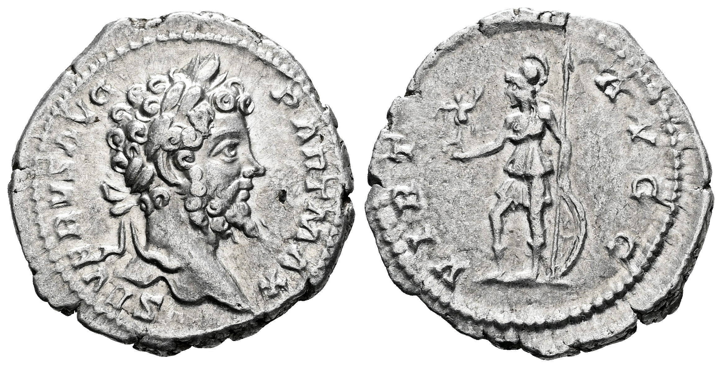 Septimio Severo. Denario. 200-201 d.C. Roma. (Ric-IV 171a). (Bmcre-211). (Rsc-761). Anv.: SEVERVS AVG PARTH MAX. Cabeza laureada a la derecha. Rev.: VIRT AVGG. Virtus en pie a la izquierda, sosteniendo una Victoria y lanza, apoyando la mano sobre un escudo. Ag. 3,42 g.  Ex VCoins "Incitacion Coins" venta privada en septiembre 2009. MBC+. Est...80,00.