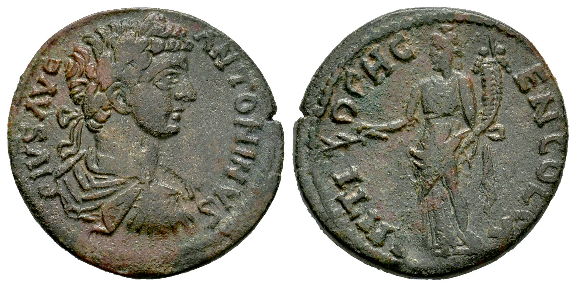 Caracalla. Assarion. 198-217 d.C. Antioquía. Pisidia. (Sng París-1178 corr. 'Elagabalus'). (Krzyzanowska). Anv.: ANTONINVS PIVS AVG. Busto laureado, drapeado y con coraza, a la derecha, visto desde atrás. Rev.: ANTIOCH GENI COL CA. Tyche-Fortuna en pie, de frente, mirando a la izquierda, sosteniendo una rama de olivo en la mano derecha y una cornucopia en la izquierda. Ae. 4,83 g. MBC+. Est...50,00.