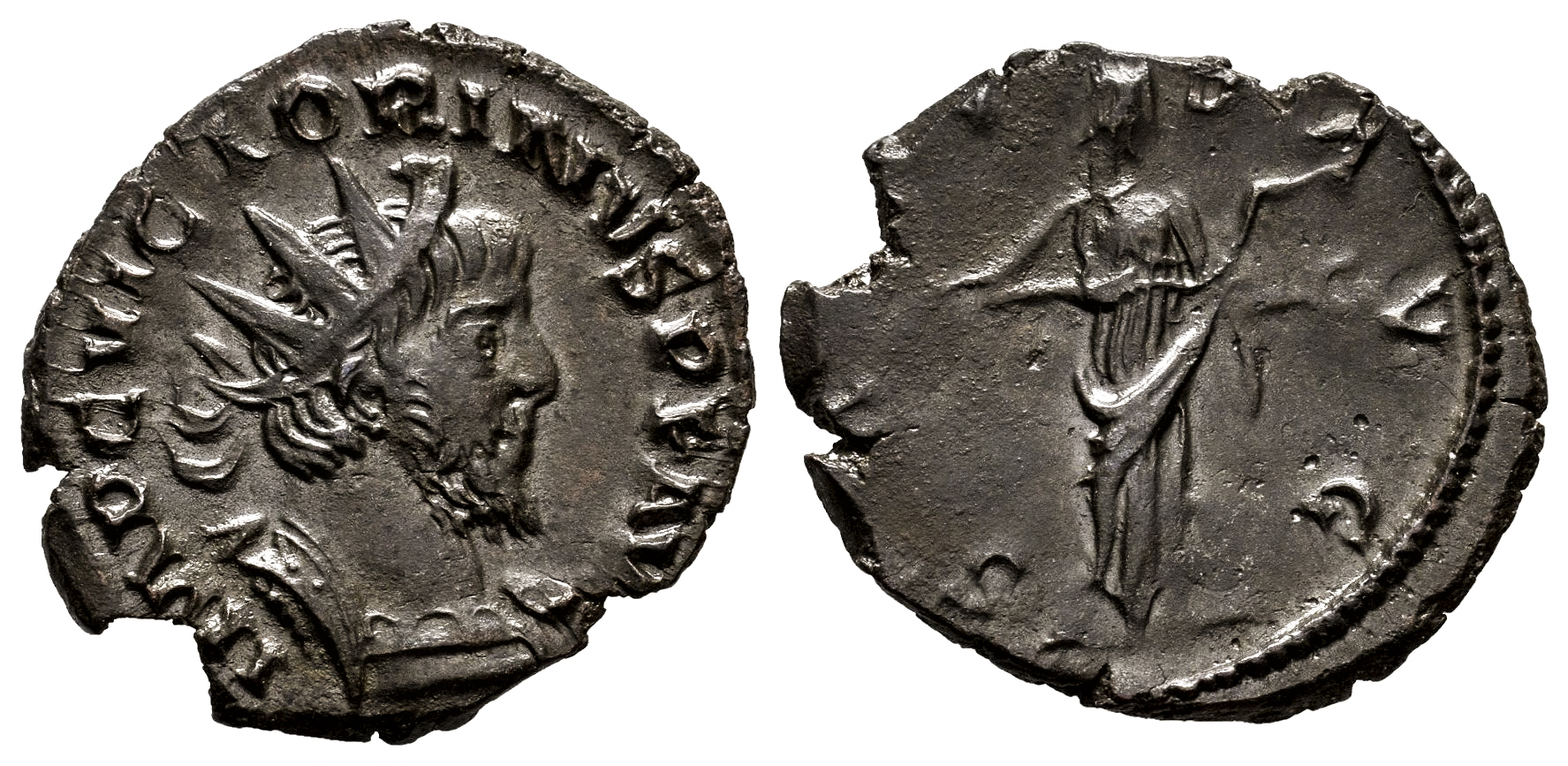 Victorino. Antoniniano. 269-270 d.C. Colonia Agrippinensis. (Ric-V 2.67). Anv.: IMP C VICTORINVS P F AVG. Busto radiado y con coraza a la derecha. Rev.: SALVS AVG. Salus en pie a la derecha, alimentando serpiente con pátera. Ve. 3,10 g. EBC/EBC-. Est...45,00.