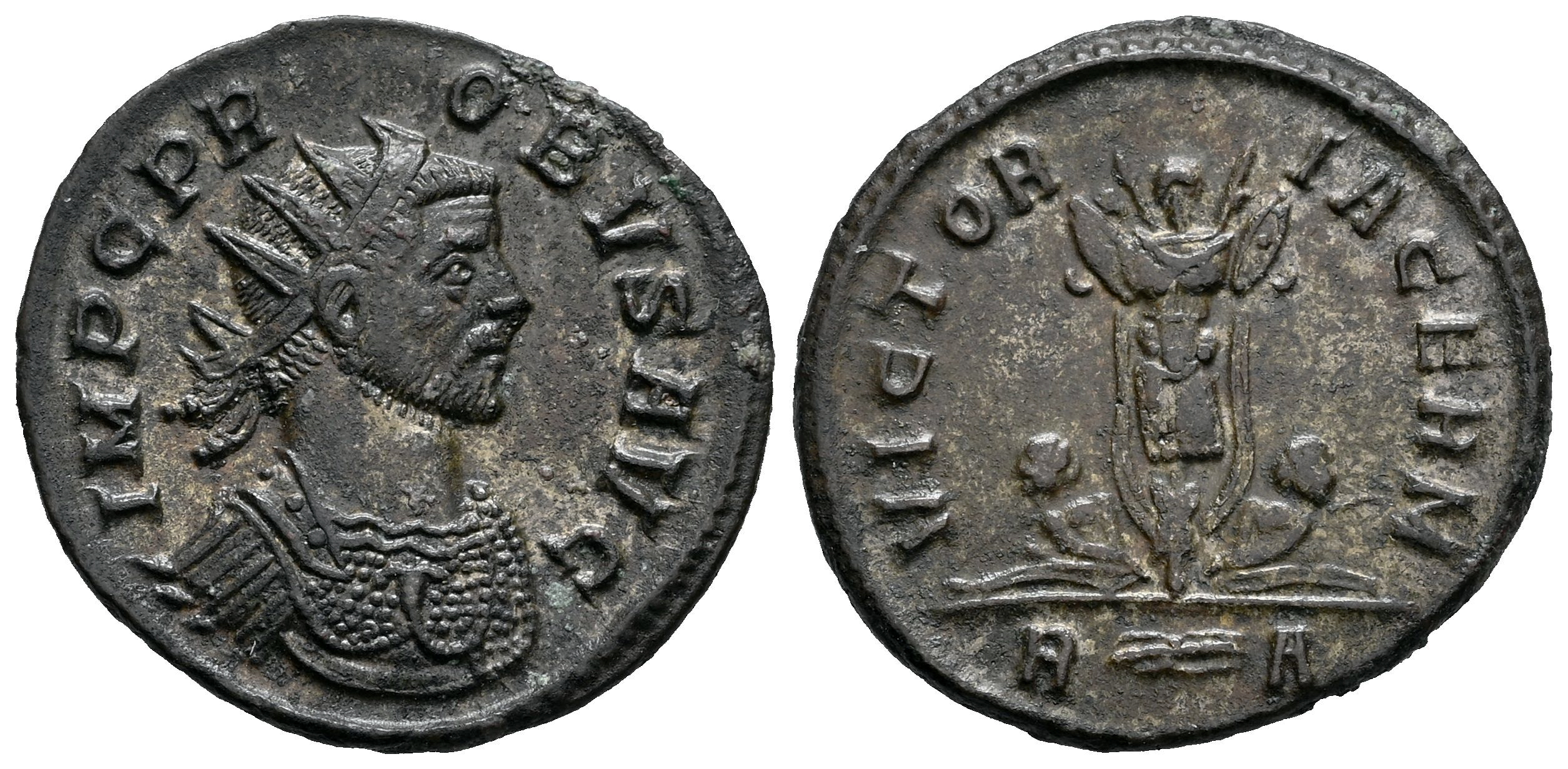 Probo. Antoniniano. 276-282 d.C. Roma. (Ric-V 2 220). Anv.: IMP PROBVS P F AVG. Busto radiado y con coraza a la derecha. Rev.: VICTORIA GERM. Trofeo entre dos cautivos; R(rayo)A en el exergo. Ve. 3,26 g. Ex Soler&Llach (14/05/2009), lote 1502. EBC-. Est...50,00.