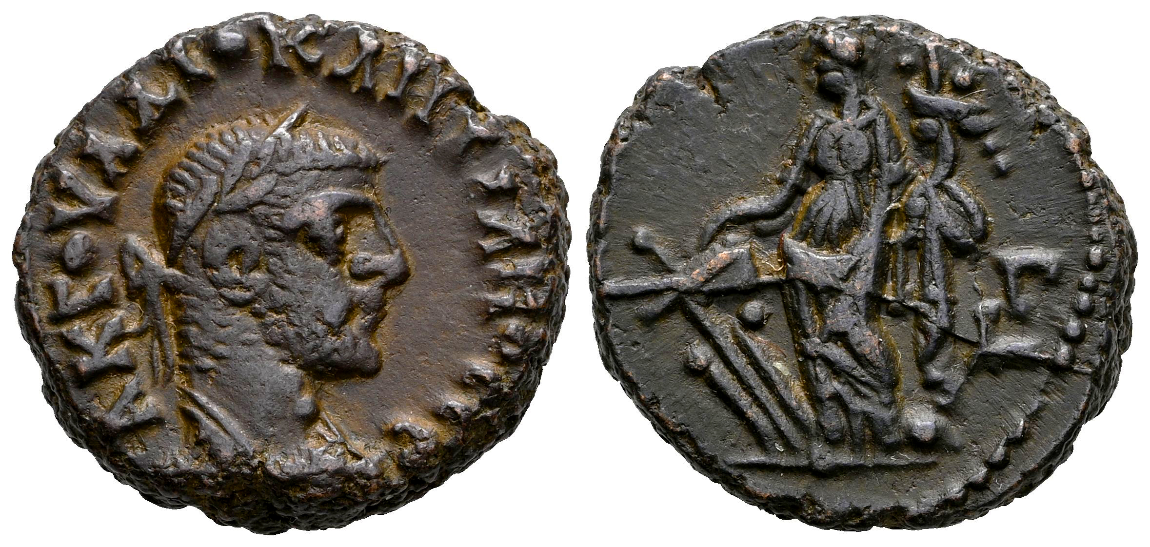Diocleciano. Tetradracma. RY 3 = 286/7 d.C. Alejandría. Egipto. (Dattari-5755). (K&G-119.37). Anv.: Α Κ Γ ΟΥΑΛ ΔΙΟΚΛΗΤΙΑΝΟϹ ϹЄΒ. Cabeza laureada de Diocleciano a la derecha. Rev.: Tyche, en pie, de frente, mirando hacia la izquierda, sosteniendo una cornucopia y un timón; L Γ (fecha) a la derecha debajo. Ve. 7,93 g. EBC-. Est...50,00.