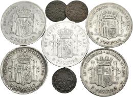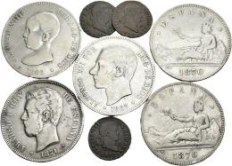 Lote de 8 monedas de España. Conteniendo de Fernando VII 2 Maravedís 1827, 1831 y 1832 Segovia; Gobierno provisional 5 Pesetas 1870 *70 (2), Amadeo I 5 Pesetas 1871 *71, Alfonso XII 5 Pesetas 1885 y Alfonso XIII 5 pesetas 1888 *88. Ae/Ag. Es imprescindible un riguroso examen. SOLO ENVÍO A ESPAÑA PENÍNSULA. NO SE ADMITE DEVOLUCIÓN. MBC-/MBC. Est...100,00.