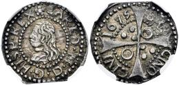 Carlos II (1665-1700). Croat. 1675. Barcelona. (Cal-200). Ag. D invertida en anverso. Bonita pátina. Encapsulada por NGC como AU 58, indica sobrefecha 1675/3 en la cápasula pero en nuestra opinión no corresponde con una sobrefecha sino que tiene un exceso de metal. Est...150,00.