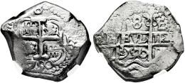 Fernando VI (1746-1759). 8 reales. 1752. Potosí. q. (Cal-522). Ag. Doble ensayador. Encapsulada por NGC como Excavation Recovery AU. Etiqueta especial "Cerro Rico Hoard". Est...400,00.