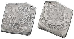 Fernando VI (1746-1759). 8 reales. 1751?. Lima. R. (Cal-449?). Ag. 26,99 g. Fecha parcialmente visible. Oxidaciones superficiales. Escasa. MBC-. Est...150,00.