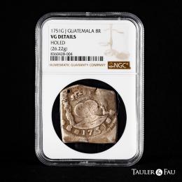 Fernando VI (1746-1759). 8 reales. 1751. Guatemala. J. (Cal-424). Ag. 26,22 g. Encapsulada por NGC como VG Details, Holed. Est...600,00.