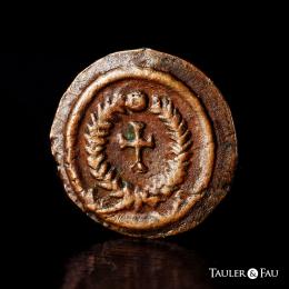 Mauricio Tiberio. Decanummium. 582-602 d.C. Ceca incierta en Italia. (¿Roma?). (C. Morrisson-"Monnaies en plomb byzantines", RIN LXXXIII (1981), 13). (Tesorillo-M. Tiberio 7, mismo ejemplar). Anv.: Busto de Mauricio Tiberio, coronado y con coraza, de frente, con dos cruces. Rev.: Gran I entre dos cruces; todo dentro de una guirnalda. . 3,77 g. Ex Gert Boersema, Vcoins (Agosto 2010). MBC. Est...40,00.