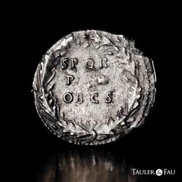Galba. As. Junio-Agosto 68 d.C. Roma. (Ric-I 304). (Bmcre-156). (Tesorillo-Galba 1, mismo ejemplar). Anv.: SER GALBA IMP CAES AVG TR P. Cabeza laureada a la derecha. Rev.: Aquila (águila legionaria) entre dos signa (estandartes), todos colocados sobre proas de galeras; S C a través de campos. . 10,40 g. Inusual manipulación de época transformando su habitual cospel redondo en una forma cuadrada a modo de medallón. Rara. Adquirida a L. Lalana en la convención de Segovia (Mayo 2014). MBC. Est...300,00.