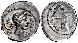 Julio César. Denario. 47-46 a.C. Galia. (Ffc-10). (Craw-458/1). (Cal-644). Anv.: Cabeza diademada de Venus a derecha. Rev.: Aeneas llevando en brazos a su padre Anchises, y sosteniendo en su mano derecha "palladium",a derecha: CAESAR. . 3,92 g. Atractivo ejemplar. Escasa en esta conservación. EBC. Est...800,00.